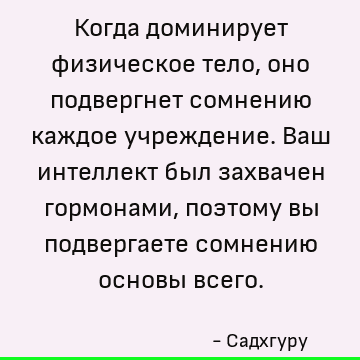 Когда доминирует физическое тело, оно подвергнет сомнению каждое учреждение. Ваш интеллект был захвачен гормонами, поэтому вы подвергаете сомнению основы всего.