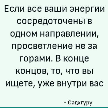 Если все ваши энергии сосредоточены в одном направлении, просветление не за горами. В конце концов, то, что вы ищете, уже внутри вас
