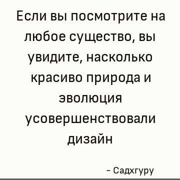 Если вы посмотрите на любое существо, вы увидите, насколько красиво природа и эволюция усовершенствовали дизайн